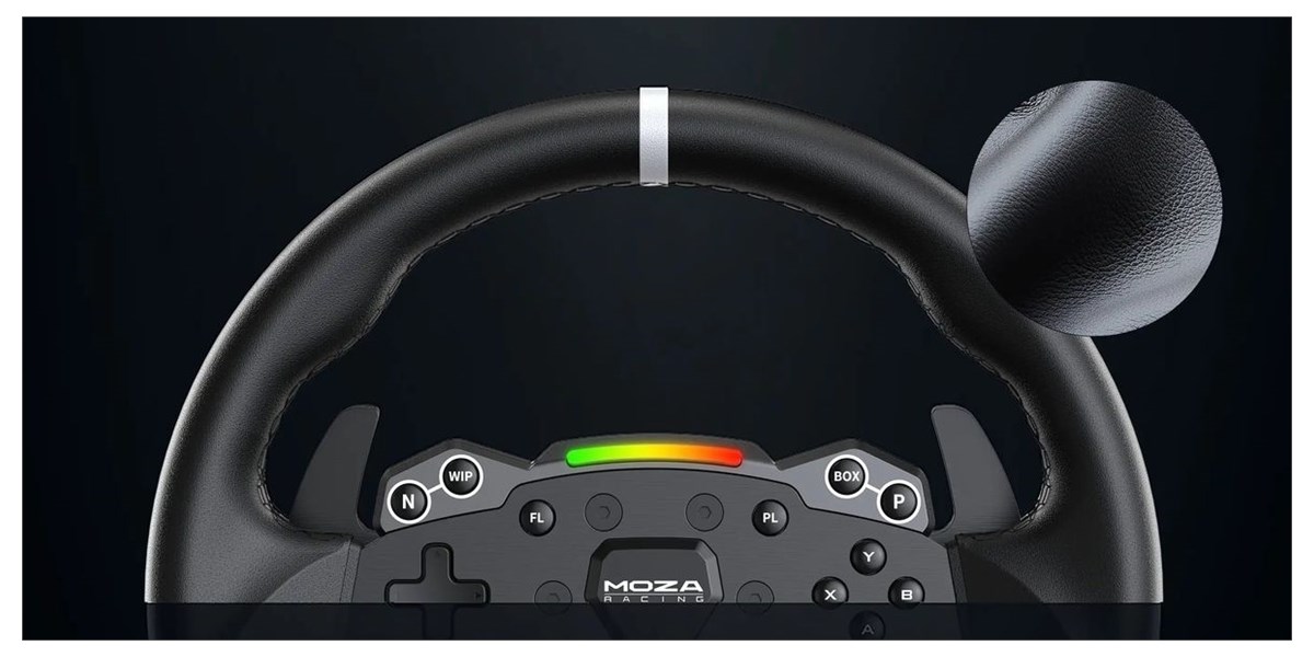 L'accent mis sur le confort et l'ergonomie se manifeste dans le choix des matériaux et dans la conception du volant Moza Racing ES. Le cuir de haute qualité, agréable au toucher, combiné à des poignées en caoutchouc TPU respectueux de l'environnement, assure une prise en main sûre et confortable. La conception sans couture aux positions critiques réduit le risque d'inconfort, permettant ainsi une concentration inébranlable sur la course.