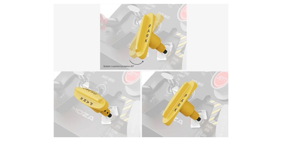 Le levier de frein de stationnement reproduit fidèlement les sensations mécaniques d’un cockpit réel. Son mouvement précis et son retour tactile permettent de ressentir chaque action, offrant un contrôle plus naturel et immersif lors des procédures d’atterrissage.