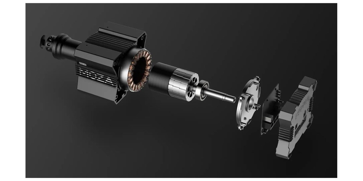Au cœur de la base, le servomoteur adopte une architecture 18 emplacements / 16 pôles spécialement développée pour réduire le cogging et garantir une réponse linéaire sur toute la plage de couple. Les variations de grip, les vibrations de piste ou les chocs sont reproduits avec nuance, sans à-coups ni dureté excessive. Les bobinages optimisés et les aimants à haute densité assurent une réserve de couple immédiate, même lors de fortes sollicitations.