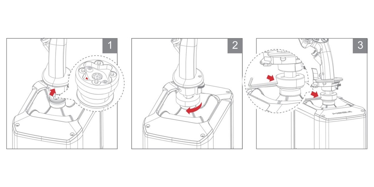 Le montage est intuitif et ne nécessite que quelques étapes. Il suffit de positionner le module entre la base et le manche pour profiter immédiatement de ses fonctionnalités.