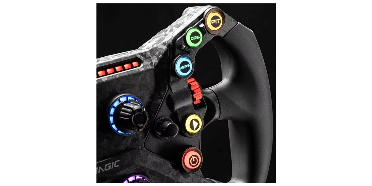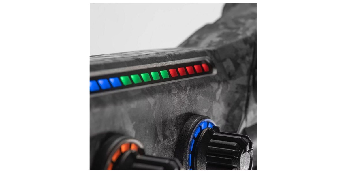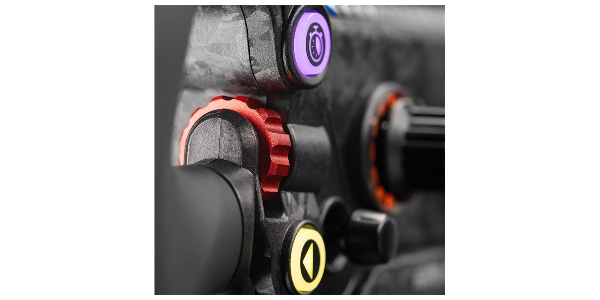 Le volant intègre de nombreux boutons RGB personnalisables pour adapter les commandes à chaque utilisateur. Les encodeurs rotatifs et les switches multi-positions permettent d’ajuster rapidement les paramètres en course. Les encodeurs au pouce offrent un contrôle supplémentaire sans lâcher le volant. Cette richesse fonctionnelle permet une gestion optimale de toutes les situations en piste.