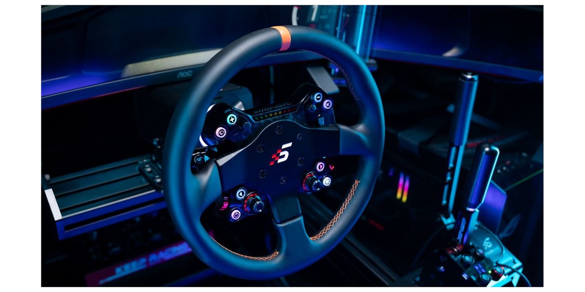 La structure en fibre de carbone assure un excellent compromis entre légèreté et rigidité. Ce matériau permet de retranscrire fidèlement les effets du retour de force. La jante en aluminium CNC renforce la solidité globale et garantit une grande durabilité. Cette conception limite également la fatigue lors des longues sessions de conduite.