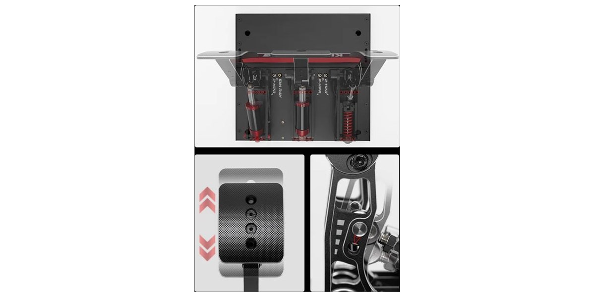 La structure en alliage d’aluminium usiné CNC garantit une rigidité exceptionnelle. Ce matériau permet de supporter des contraintes élevées, notamment lors des freinages intensifs. L’absence de flexion assure un ressenti précis et constant sous le pied. Cette conception assure également une excellente durabilité pour un usage prolongé.