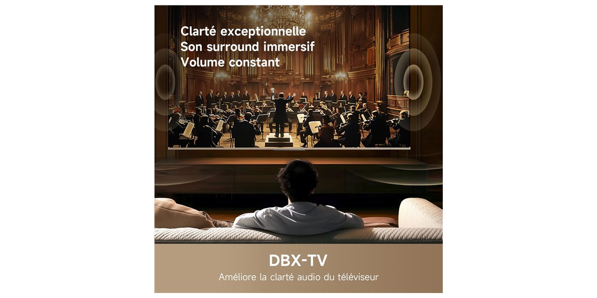 L’expérience audio repose sur l’intégration des technologies Dolby Audio et dbx-tv, conçues pour améliorer la clarté et la spatialisation du son. Les dialogues restent intelligibles tandis que les effets sonores gagnent en ampleur. Cela permet de profiter pleinement des films et des séries sans nécessiter d’équipement supplémentaire. La scène sonore s’élargit pour offrir une immersion plus naturelle. Les basses sont mieux définies et les différentes fréquences sont équilibrées afin de produire un rendu harmonieux. Cette qualité audio contribue à renforcer l’immersion globale. La connectivité Bluetooth permet également de relier facilement des équipements audio externes. Cette flexibilité offre la possibilité d’adapter l’écoute selon les préférences et les usages.