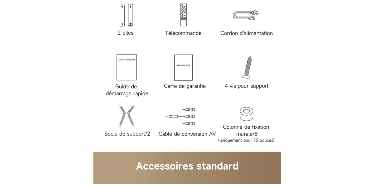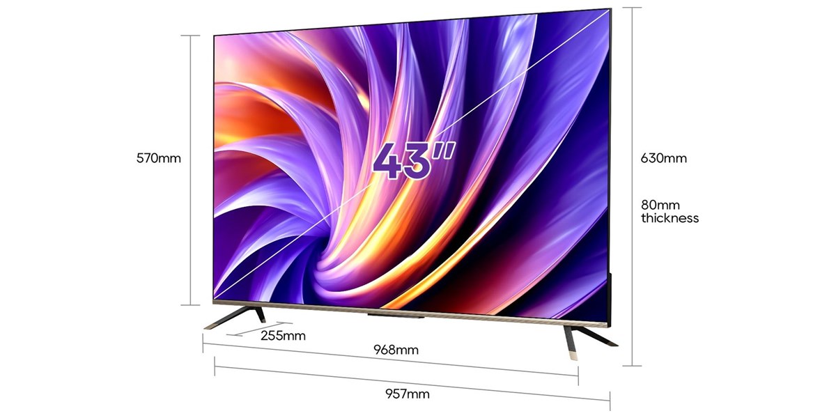 Le design se distingue par des finitions soignées et une structure élégante. La présence d’une barre décorative et d’un socle métallique apporte une touche esthétique qui s’intègre facilement dans différents styles d’intérieur. Les dimensions équilibrées permettent une installation simple, que ce soit sur un meuble ou fixé au mur. L’ensemble reste discret tout en offrant une présence visuelle moderne. Ce design contribue à valoriser l’espace tout en mettant en avant l’écran et la qualité d’image.