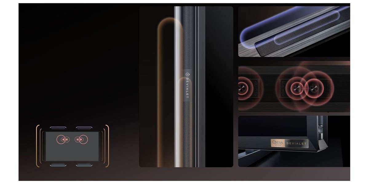 Développé en collaboration avec Devialet, le système audio 6.2.2 CineStage X Surround transforme le téléviseur en véritable scène sonore tridimensionnelle. Les deux subwoofers intégrés et la compatibilité Dolby Atmos et DTS Virtual:X enveloppent le spectateur d’un son riche et profond, digne d’une salle de cinéma.