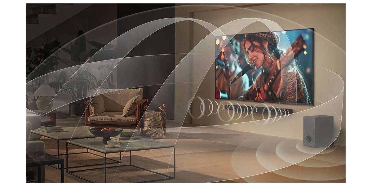 Le processeur α8 AI Gen2 améliore chaque scène grâce à AI Picture Pro (upscaling, gestion HDR dynamique, tonemapping local). AI Brightness adapte la luminosité à l’environnement, tandis que AI Sound Pro crée une scène sonore 9.1.2 virtuelle.