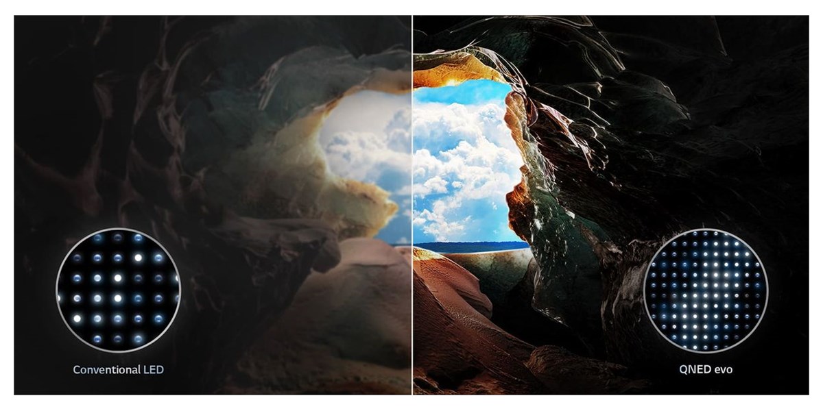 La dalle Mini LED gère des centaines de zones de rétroéclairage via le Precision Dimming pour des noirs profonds et une excellente lisibilité des détails. La technologie Dynamic QNED Color couvre 100 % du DCI-P3 (certifié Intertek), pour des couleurs riches et fidèles.