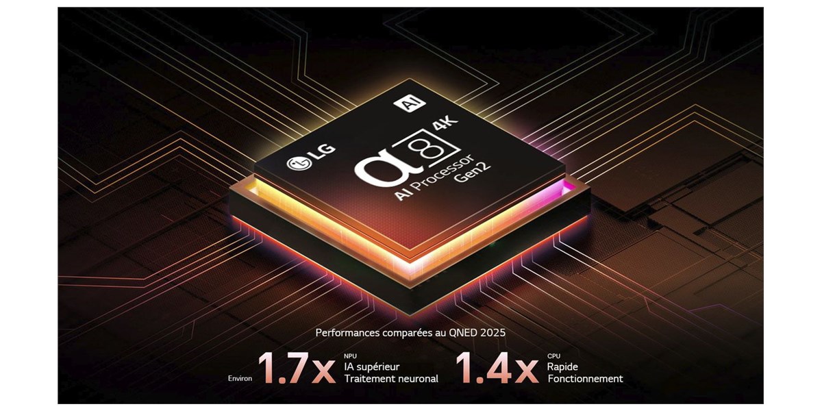 Le LG 100QNED86A est un téléviseur Mini LED 4K UHD de 100 pouces conçu pour offrir une immersion spectaculaire. Il combine la technologie QNED evo à un rétroéclairage Mini LED ultra précis, piloté par l’IA du processeur α8 Gen2 pour une qualité d’image exceptionnelle.
