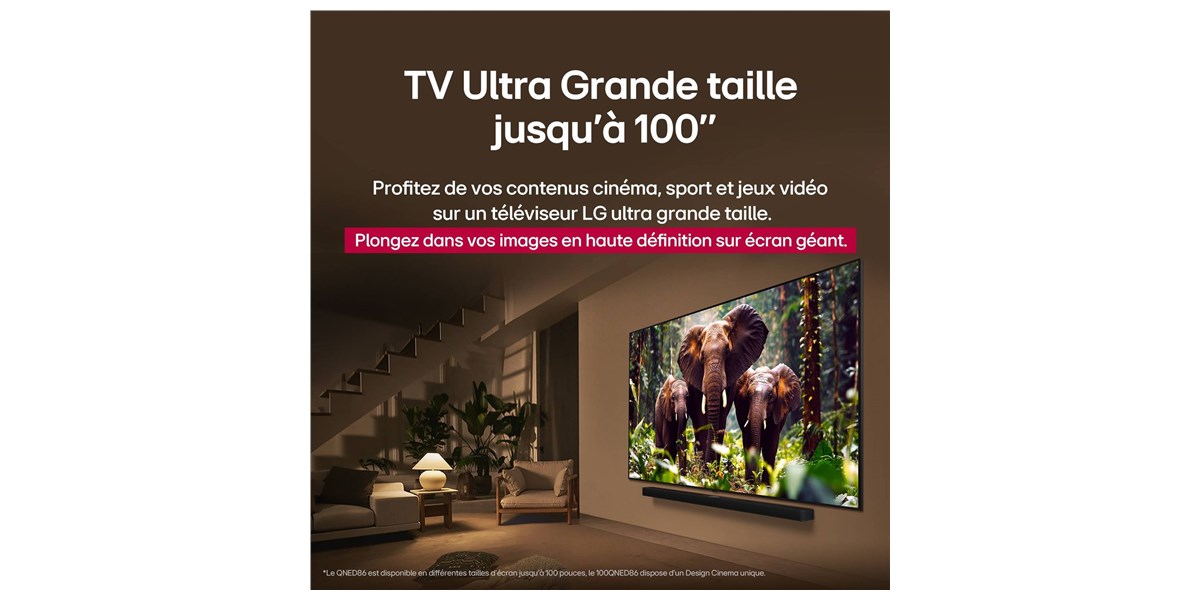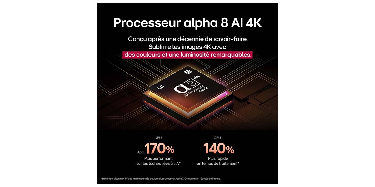 La dalle QNED MiniLED apporte une gestion plus fine du rétroéclairage, permettant d’obtenir un contraste amélioré et une meilleure lisibilité des détails. Les zones de luminosité sont ajustées avec précision pour renforcer la profondeur de l’image. Cette technologie permet d’afficher des scènes lumineuses et sombres avec un excellent équilibre. Le résultat offre une image plus réaliste et immersive.