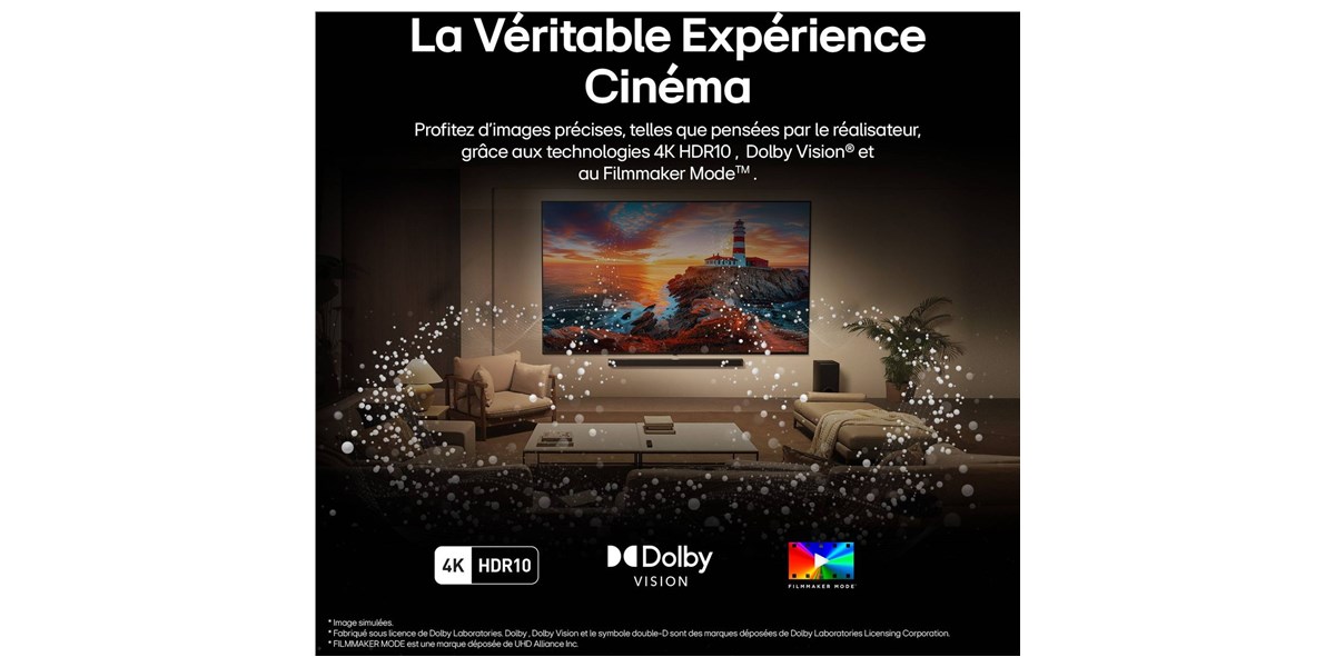 | Fonctions HDMI | ARC, eARC, ALLM (Auto Low Latency Mode), CEC SimpLink, VRR (Variable Refresh Rate) |