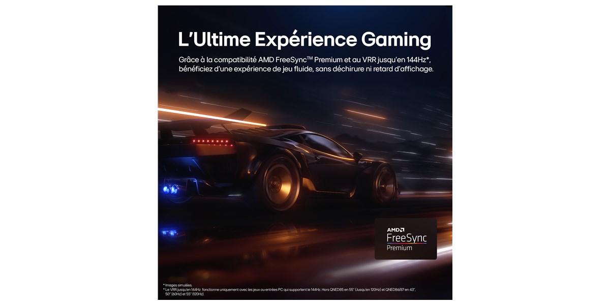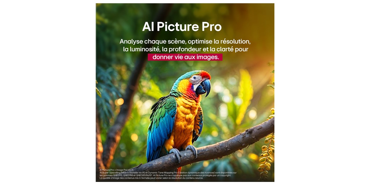 Dotée de la technologie QNED associée à un rétroéclairage MiniLED à Local Dimming, cette TV offre un contraste précis et des noirs intenses. Sa technologie Dynamic QNED Color garantit une reproduction des couleurs 100% certifiée, même à forte luminosité. Avec la prise en charge du Dolby Vision, HDR10 et HLG, chaque scène gagne en profondeur, en détail et en réalisme.