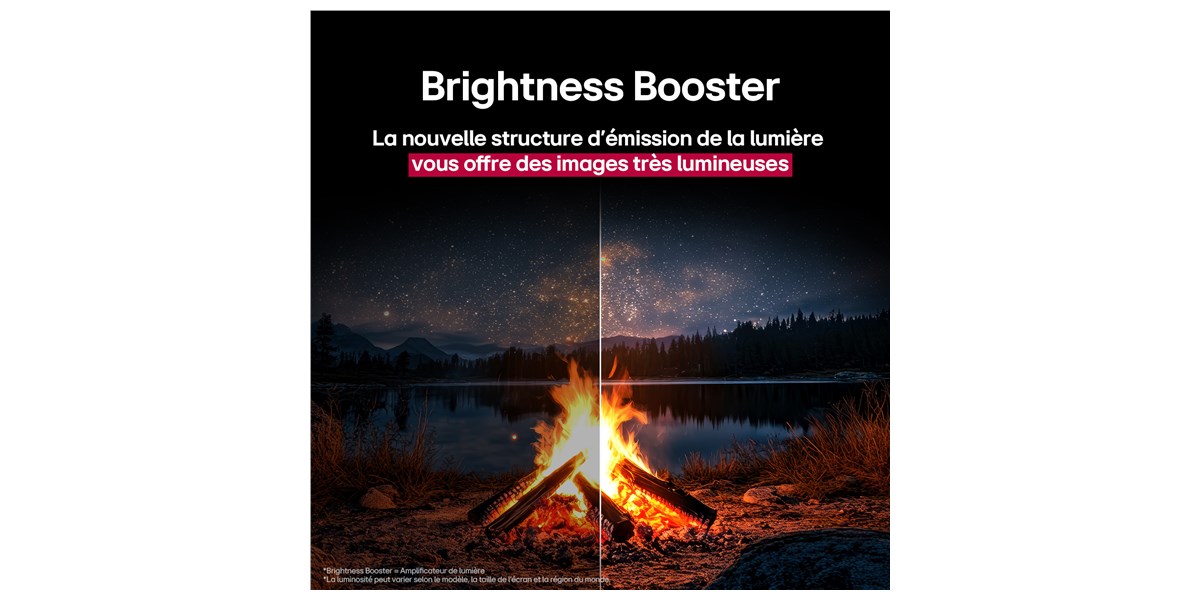 Avec ses 77 pouces, ce modèle offre une expérience XXL, sublimée par la technologie Brightness Booster. Celle-ci optimise la luminosité grâce à un puissant algorithme, pour des images vives et précises. Les pixels auto-émissifs assurent un noir absolu et un contraste infini, certifié « Perfect Black ».