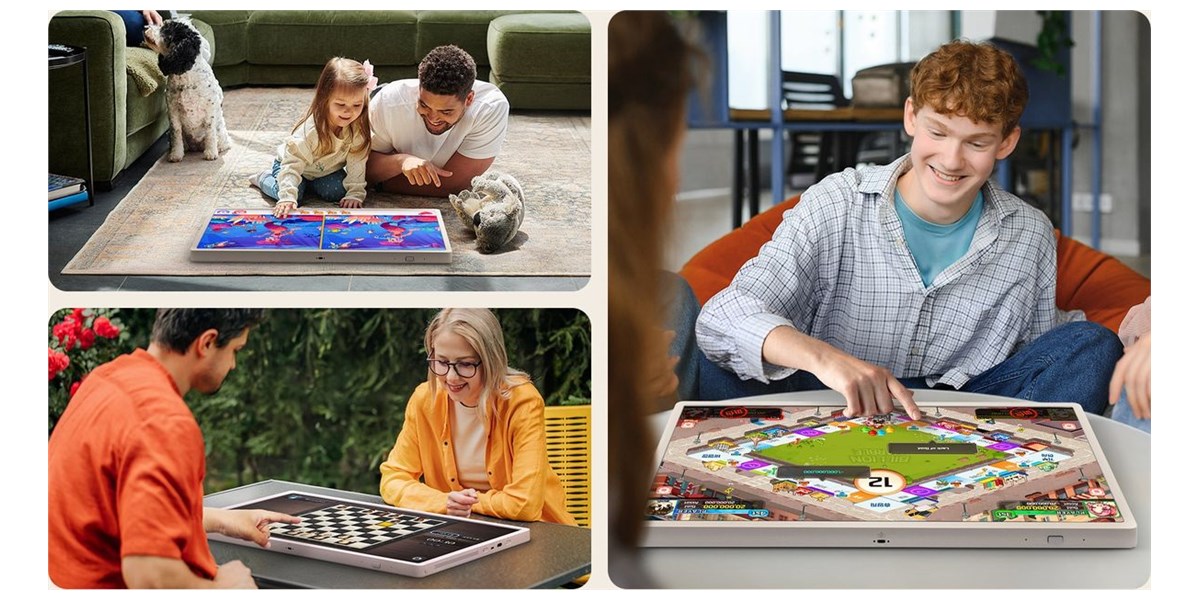 L’écran tactile ouvre la voie à des usages plus interactifs. L’application "Let's Draw" autorise le dessin ou la prise de notes directement au doigt, pratique pour les enfants, le brainstorming ou les activités créatives. Des jeux intégrés (échecs, Memory, jeu des différences, etc.) permettent de jouer immédiatement à plusieurs sans équipement externe. Avec la fonction "Mood Maker", l’écran devient élément décoratif en affichant œuvres, horloges ou paysages. Cet ensemble transforme l’appareil en support polyvalent, aussi bien ludique qu’utile pour la maison, les espaces collaboratifs ou les environnements éducatifs.