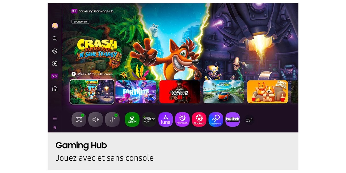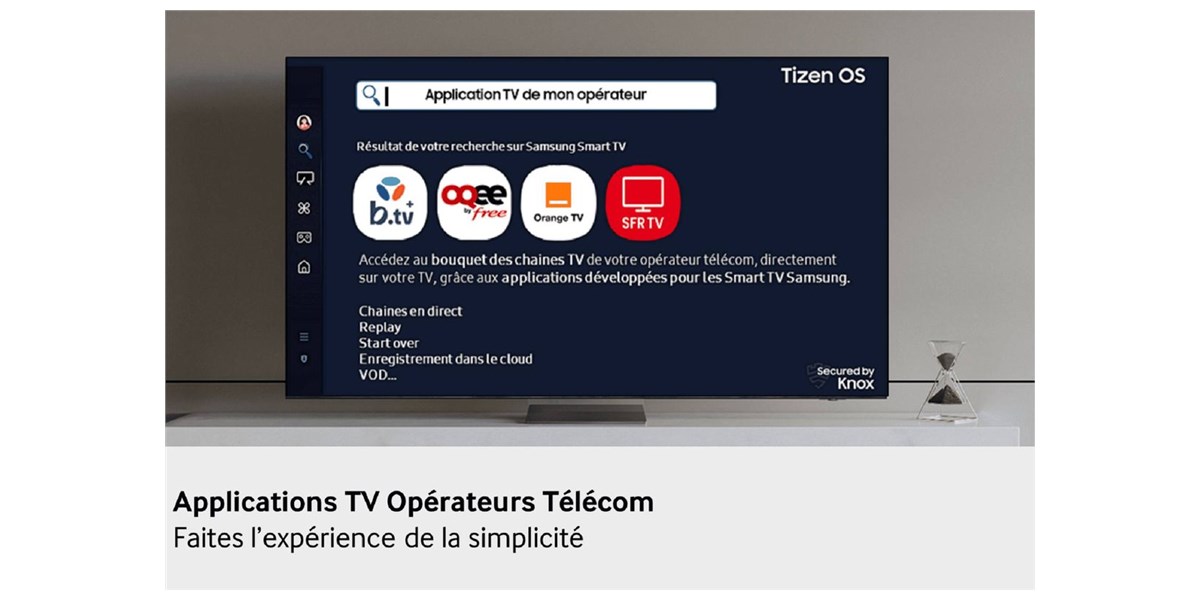 | Services streaming principaux | Prime Video, Netflix, YouTube, Disney+, Apple TV+, MyCanal, Samsung TV Plus |