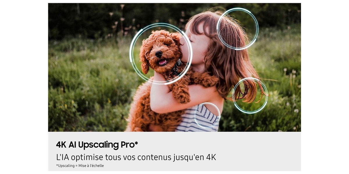 Le processeur NQ4 AI Gen3 du TQ77S92F exploite l’intelligence artificielle pour améliorer la qualité des contenus. Il analyse chaque scène en temps réel pour optimiser netteté, contraste et couleurs. Le 4K AI Upscaling Pro convertit automatiquement les contenus de moindre qualité vers une définition proche de la 4K, pour un rendu homogène sur ce très grand écran.