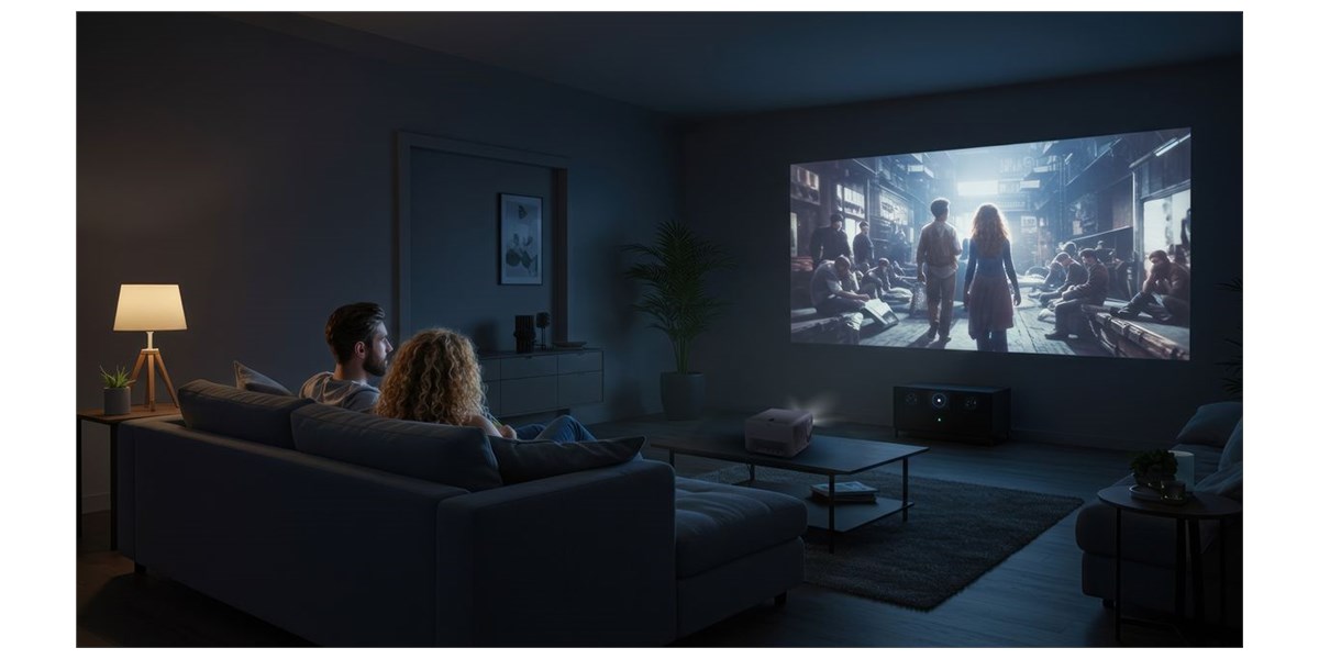 Le projecteur intègre Google TV certifié, avec accès direct aux services comme Netflix, YouTube, Prime Video ou Disney+. La navigation est fluide via la télécommande fournie ou l’application mobile. En plus, ses deux haut-parleurs de 8 W suffisent pour une séance occasionnelle, et un mode Bluetooth permet de l’utiliser comme enceinte sans fil.