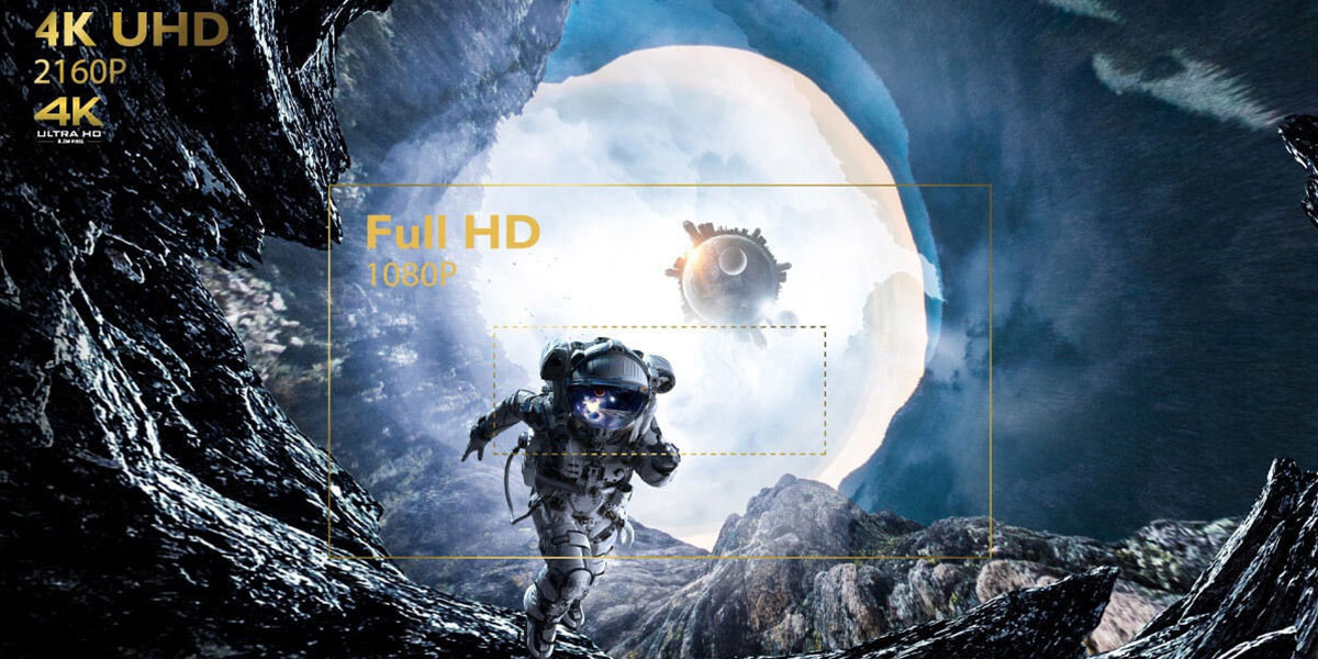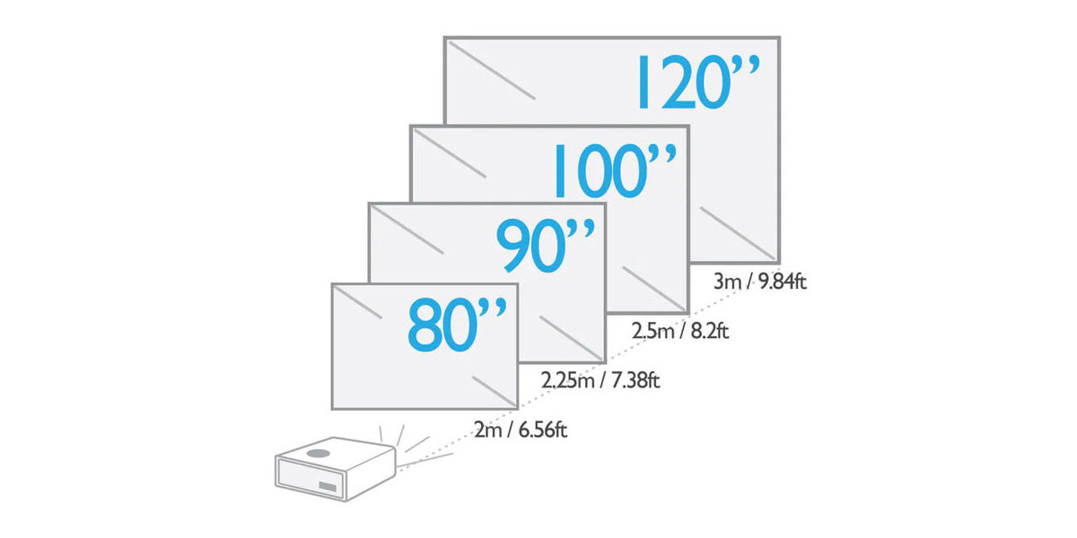 Dans l'obscurité comme dans une semi-pénombre, vous pouvez pleinement exploiter votre vidéoprojecteur UHD 4K. Sa lampe diffuse en effet une luminosité de 2000 lumens et vous propose une longévité de 4000 heures en mode normal. En mode éco, la longévité est de 10000 heures. La focale courte permet en outre de profiter d'une image de diagonale 3 mètres en positionnant simplement l'appareil à 3 ou 4 mètres. Vous pouvez effectuer un zoom manuel de facteur 1,3 pour plus de précision.