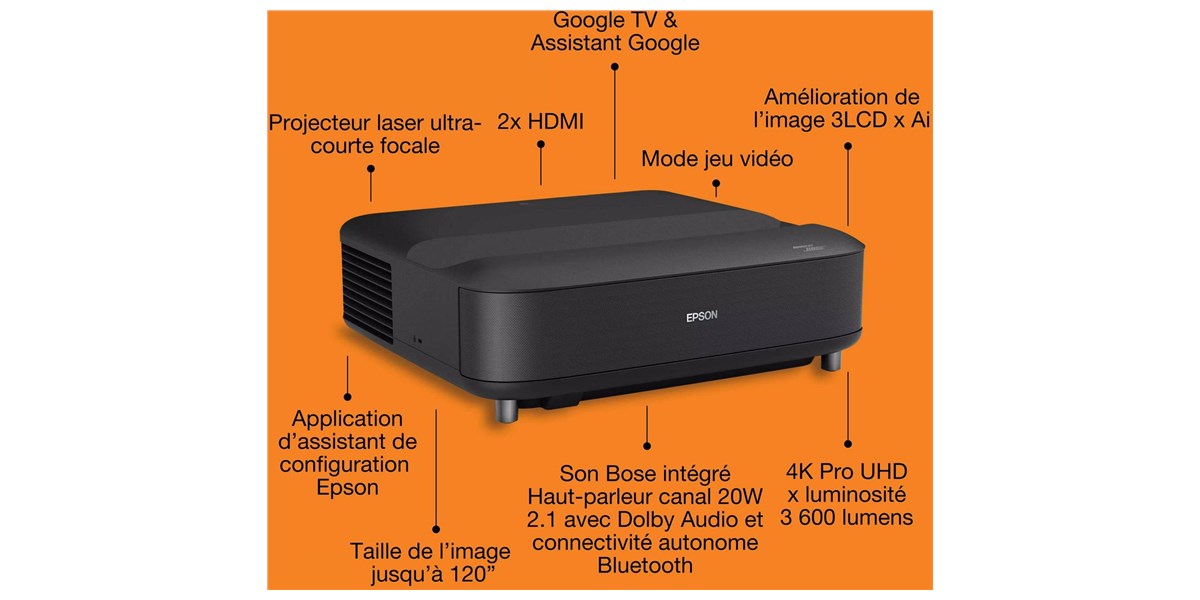 Le Epson EH-LS670 Noir se distingue par sa qualité d’image, son audio intégré, sa connectivité complète et sa simplicité d’installation. Idéal pour une utilisation familiale ou passionnée, il propose une alternative moderne aux téléviseurs traditionnels tout en offrant une expérience visuelle spectaculaire.
