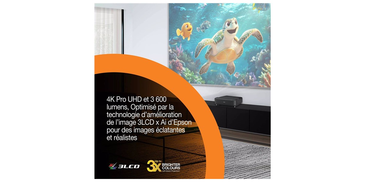 La technologie 3LCD embarquée permet d’obtenir des images équilibrées, lumineuses et fidèles. L’appareil délivre 3 600 lumens en luminosité couleur et blanche, pour une projection nette même en plein jour. Associée au moteur TRIPLE CORE ENGINE et à l’intelligence artificielle, cette technologie ajuste automatiquement les réglages d’image. Avec sa compatibilité HDR10 et son contraste dépassant les 5 000 000:1, le EH-LS670 restitue chaque détail avec précision, même dans les zones sombres.