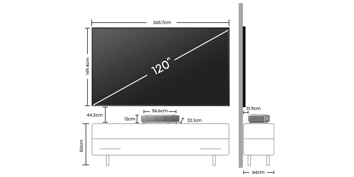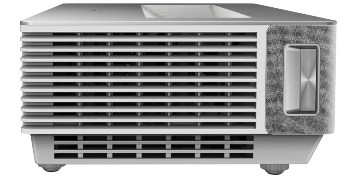 Le vidéoprojecteur compact s’installe à seulement 32 cm de l’écran pour projeter une image de 3 mètres de diagonale. Son design sobre et sa finition premium s’intègrent élégamment dans le salon. L’écran ALR est fourni avec fixation murale et le système intègre une protection oculaire automatique.