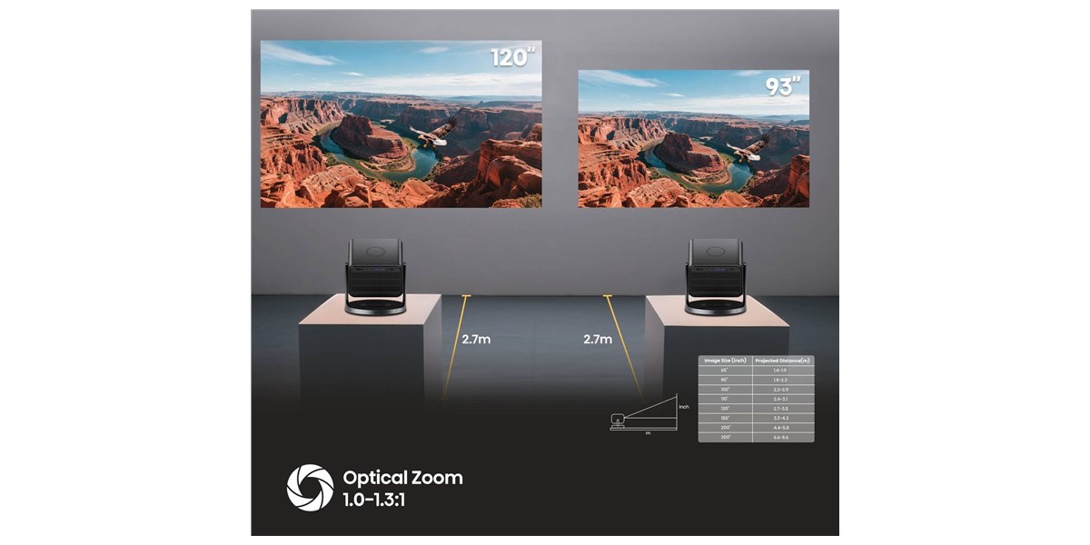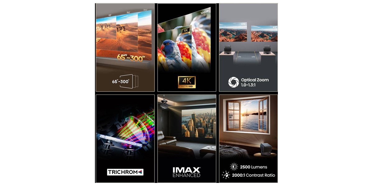 Grâce à sa résolution 3840 x 2160 pixels, il affiche une image extrêmement détaillée, même sur de très grandes diagonales. Capable de projeter jusqu’à 300 pouces, il transforme n’importe quel espace en véritable salle de projection pour une immersion totale.
