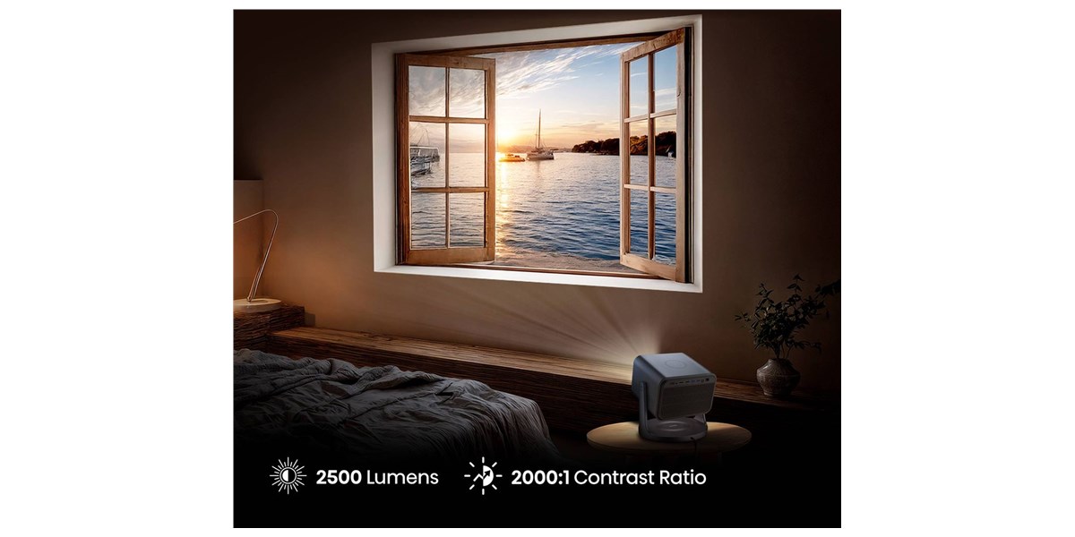 Avec 2500 lumens, il garantit une image lumineuse et lisible, même dans une pièce légèrement éclairée. Cette puissance permet de conserver un excellent niveau de détail sur les très grandes images.
