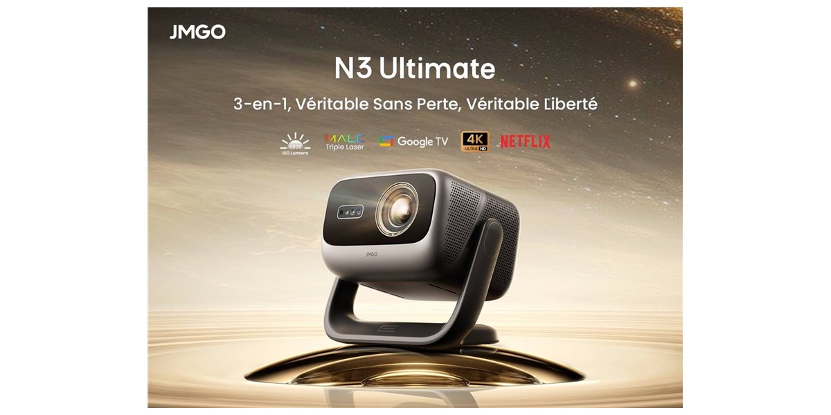 Le vidéoprojecteur JMGO N3 Ultimate 4K incarne une nouvelle génération de solutions home-cinéma pensées pour offrir une expérience immersive, fluide et accessible. Grâce à sa technologie triple laser avancée, sa définition 4K Ultra HD et sa luminosité impressionnante, il permet de profiter d’images grand format avec une précision remarquable. Adapté aussi bien aux passionnés de cinéma qu’aux amateurs de jeux vidéo, ce modèle mise sur une polyvalence totale en intégrant des fonctions intelligentes, une connectivité complète et une qualité audio intégrée performante. Sa capacité à projeter une image allant jusqu’à 300 pouces transforme n’importe quel espace en véritable salle de projection, tout en conservant une simplicité d’installation et d’utilisation au quotidien.