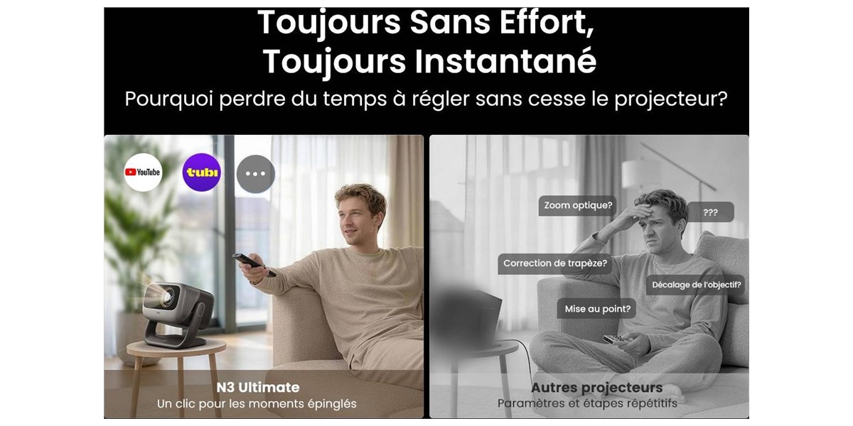 En réunissant des technologies avancées, une grande facilité d’installation et des performances élevées, ce vidéoprojecteur s’impose comme une solution complète. Il permet de profiter d’une image grand format avec une qualité constante et une utilisation simplifiée. Son positionnement premium en fait un choix pertinent pour les amateurs de projection souhaitant allier innovation et confort au quotidien.