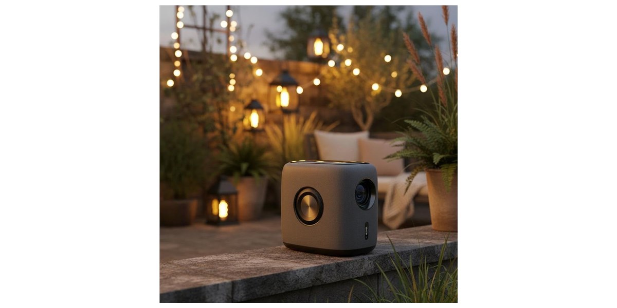 Avec ses dimensions compactes et son poids de 4,3 kg, ce modèle se positionne facilement sur un meuble ou une étagère. Son design sobre et vertical s’intègre discrètement dans un intérieur moderne tout en garantissant une bonne stabilité et un angle de projection ajustable.