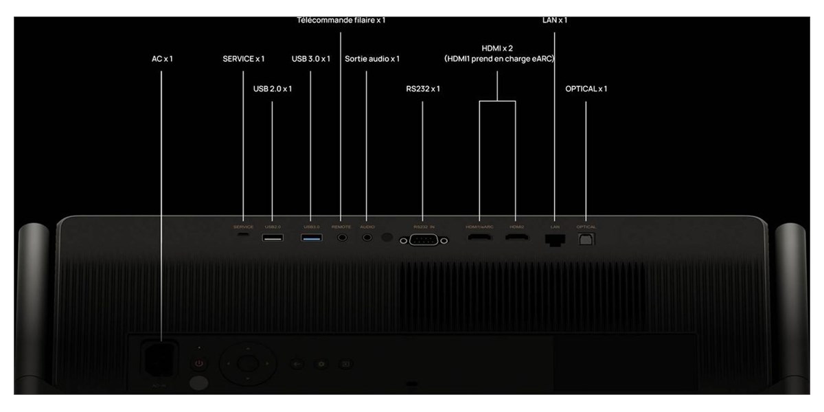Avec ses ports HDMI eARC, USB 3.0, LAN, sortie audio optique et RS232, le Xgimi Titan est prêt pour toutes les sources modernes : consoles, lecteurs Blu-ray, barres de son ou équipements domotiques. Son alimentation intégrée simplifie également les installations murales ou plafonnières.