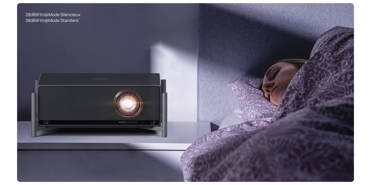 Malgré sa puissance, le Xgimi Titan reste discret avec seulement 28 dB en fonctionnement standard. Son format compact et son design soigné permettent une intégration facile dans tous les environnements, sans nuisance sonore.